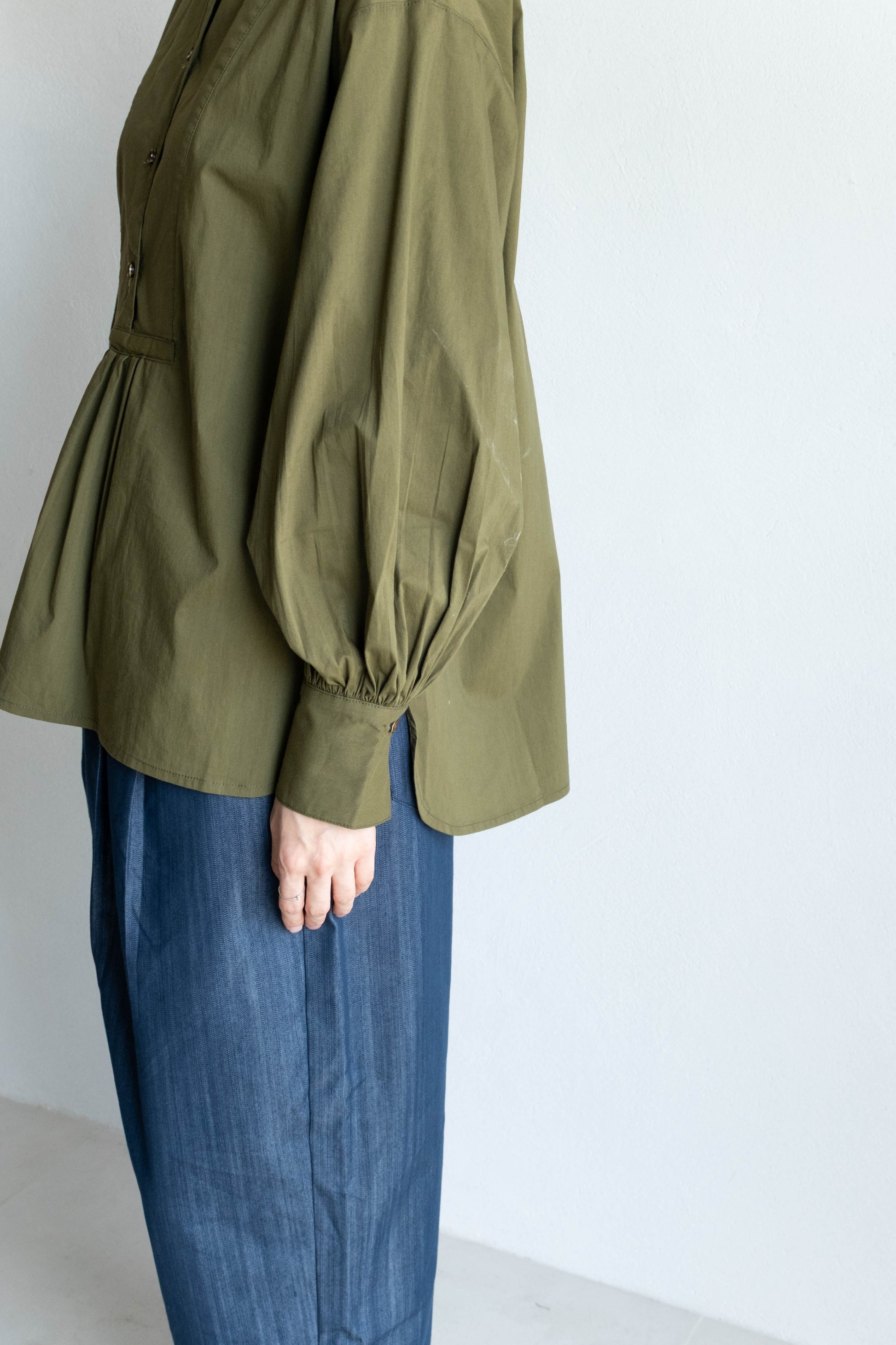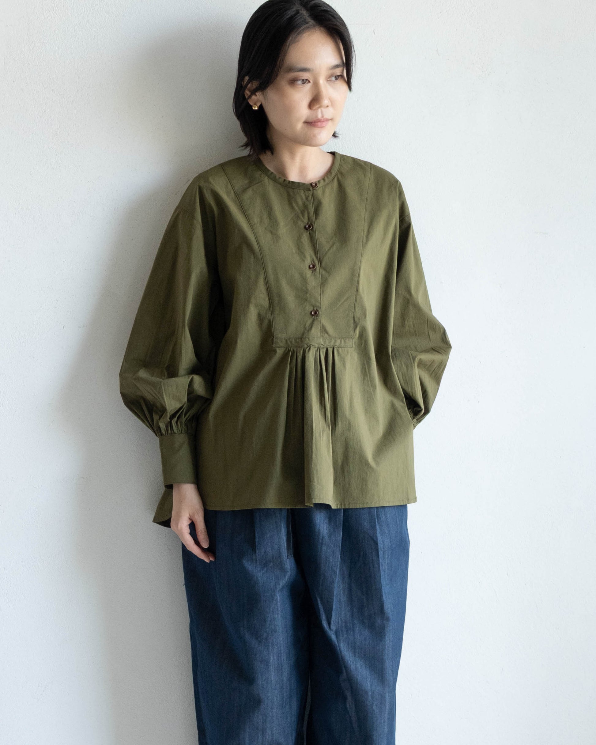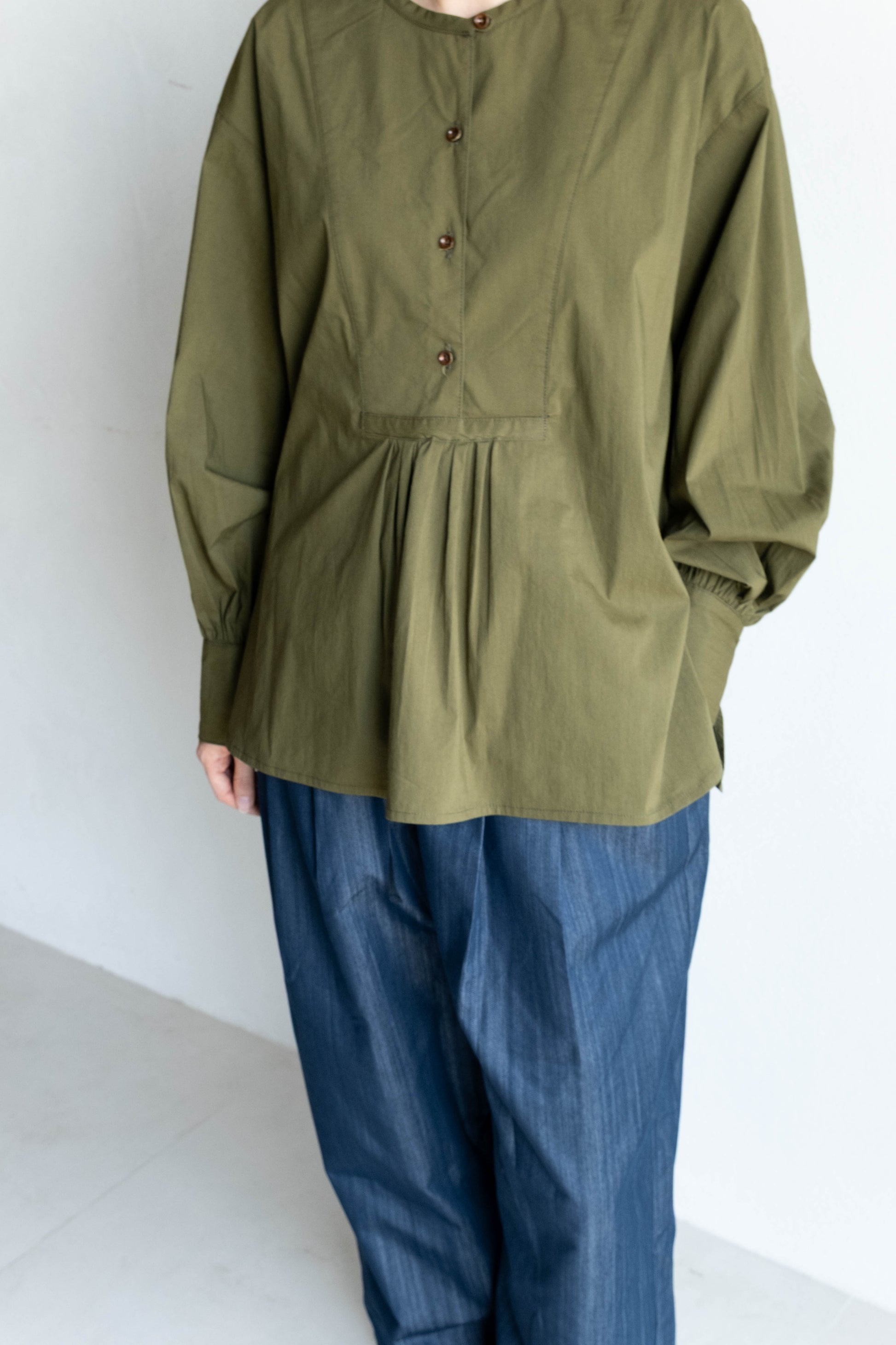 前胸剪接長版襯衫 - 軍綠
