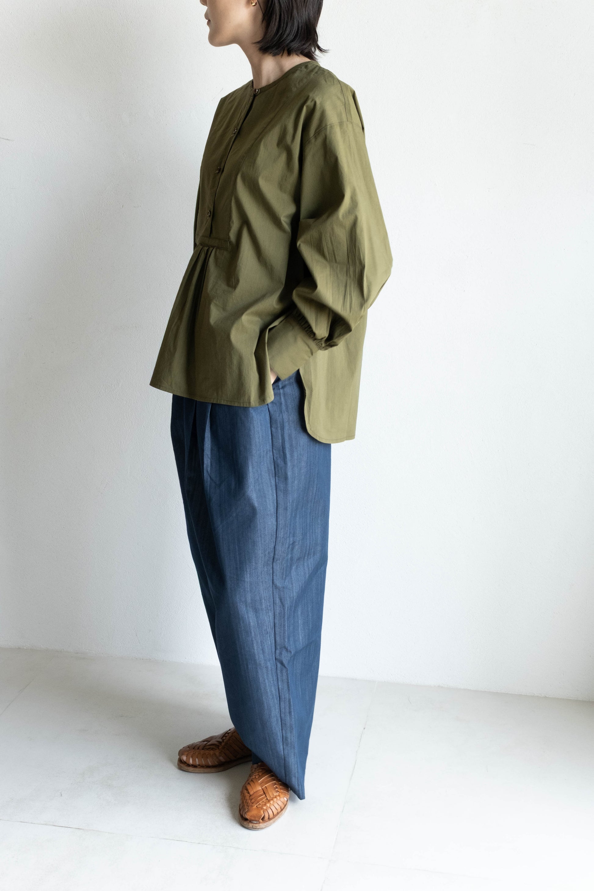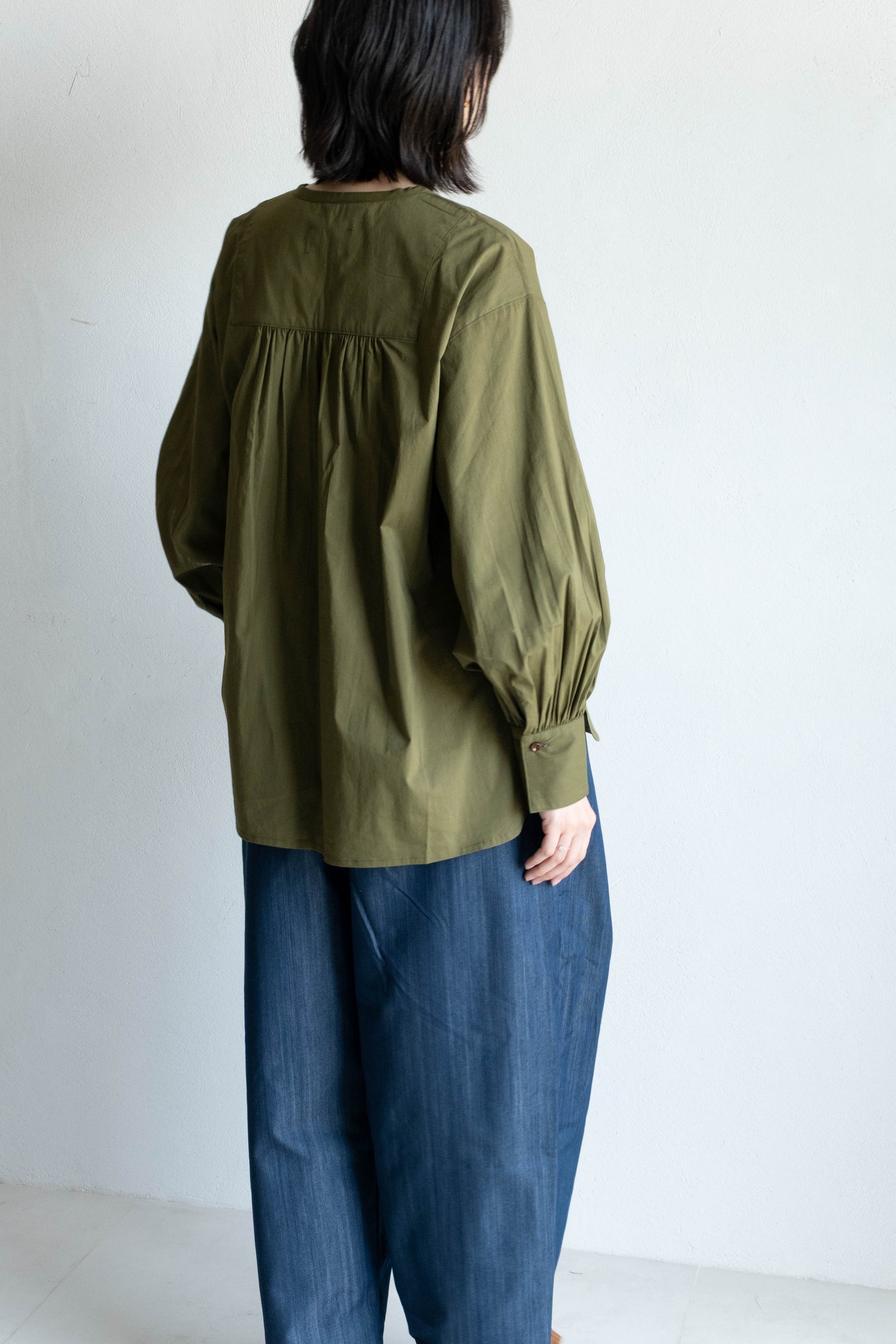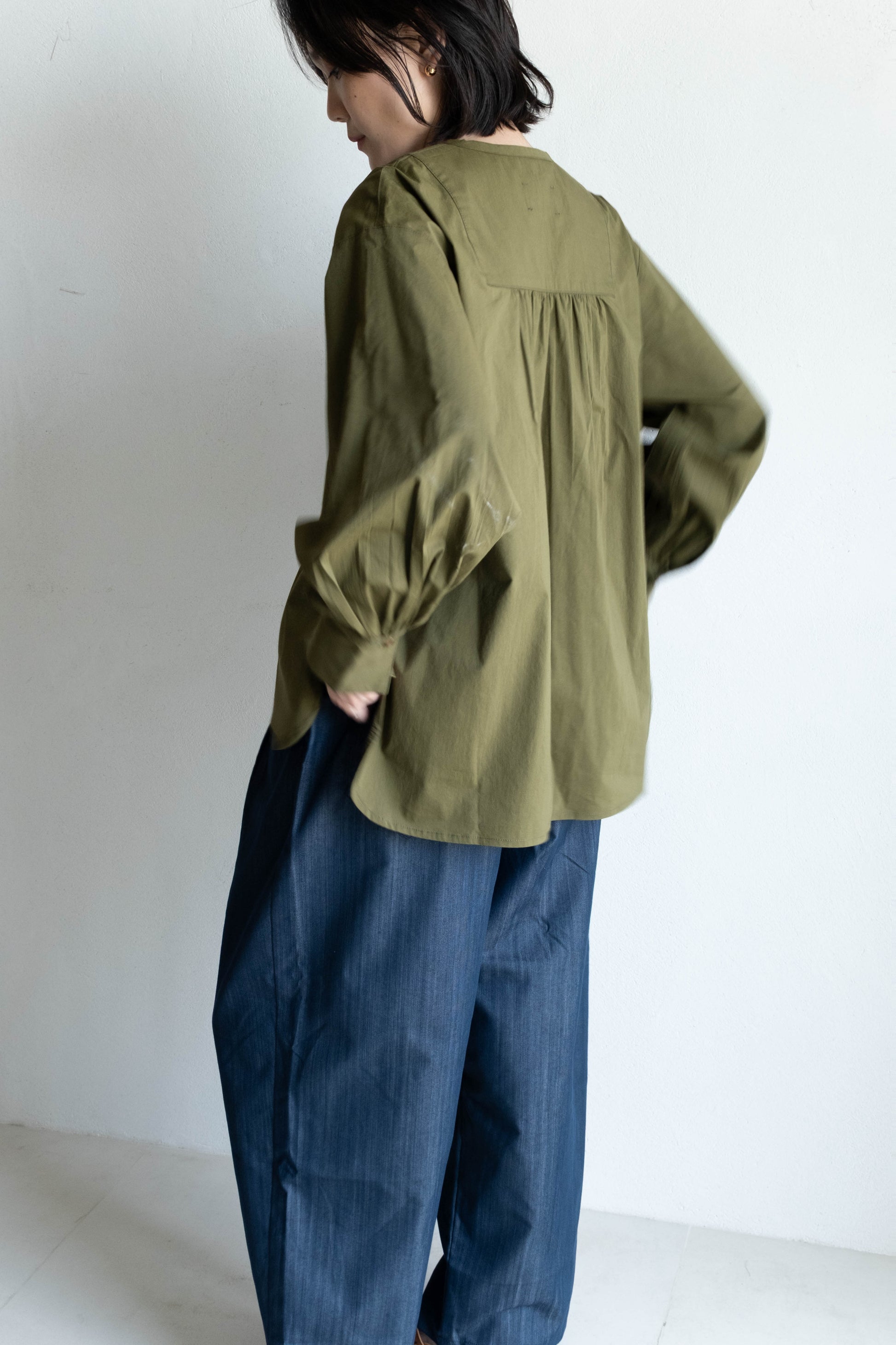 前胸剪接長版襯衫 - 軍綠