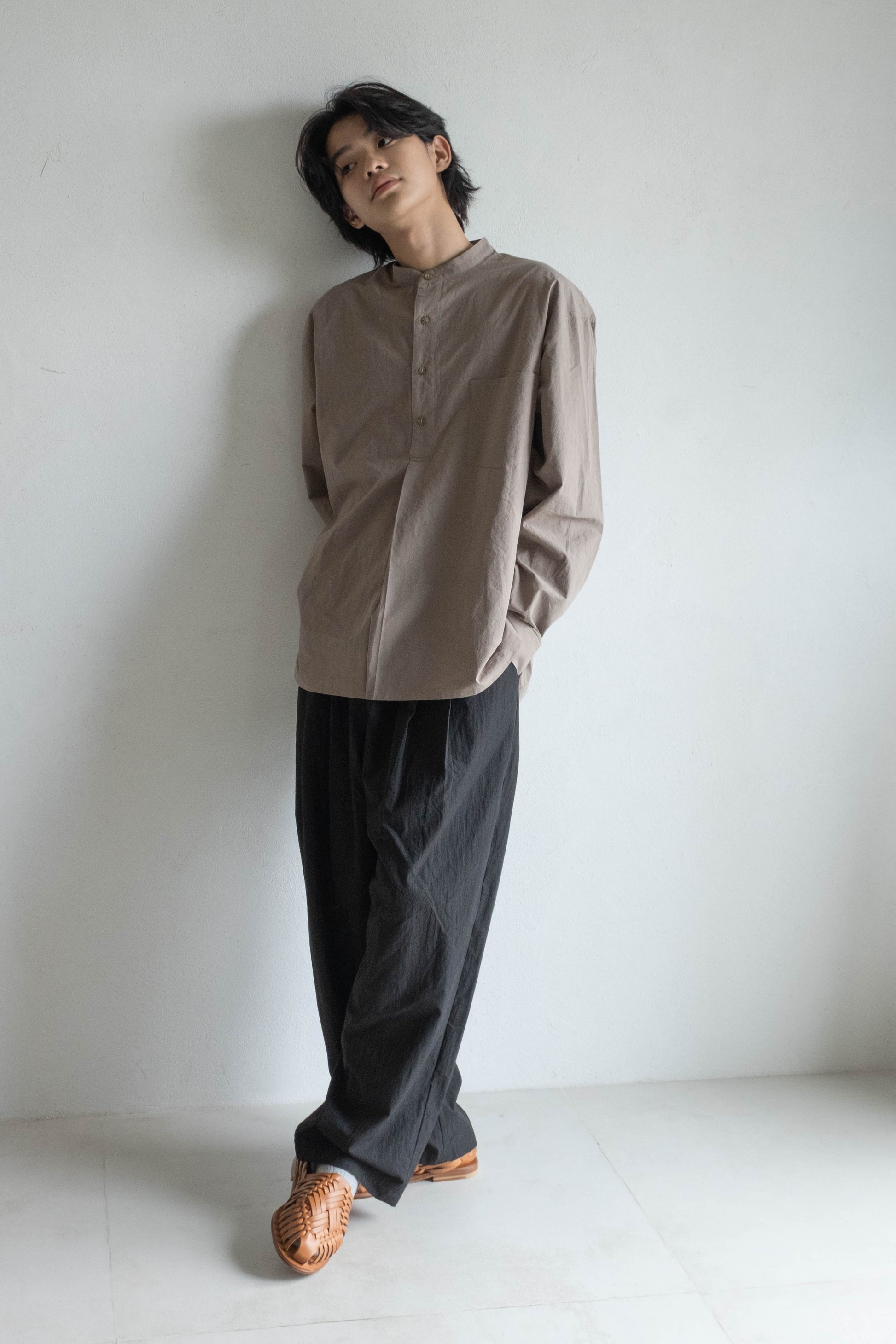 前門襟以活摺設計增添層次細節,下擺前短後長,活動時更顯輕盈俐落。是一款能自在融入日常的實穿款式。