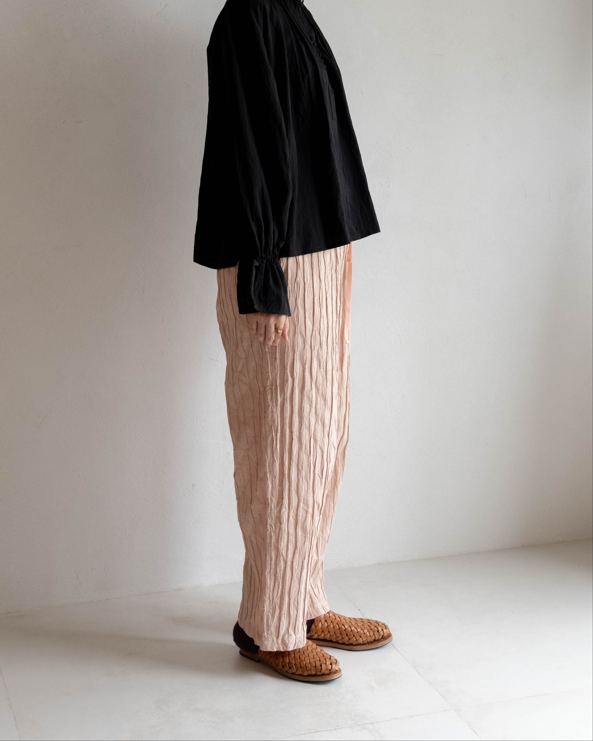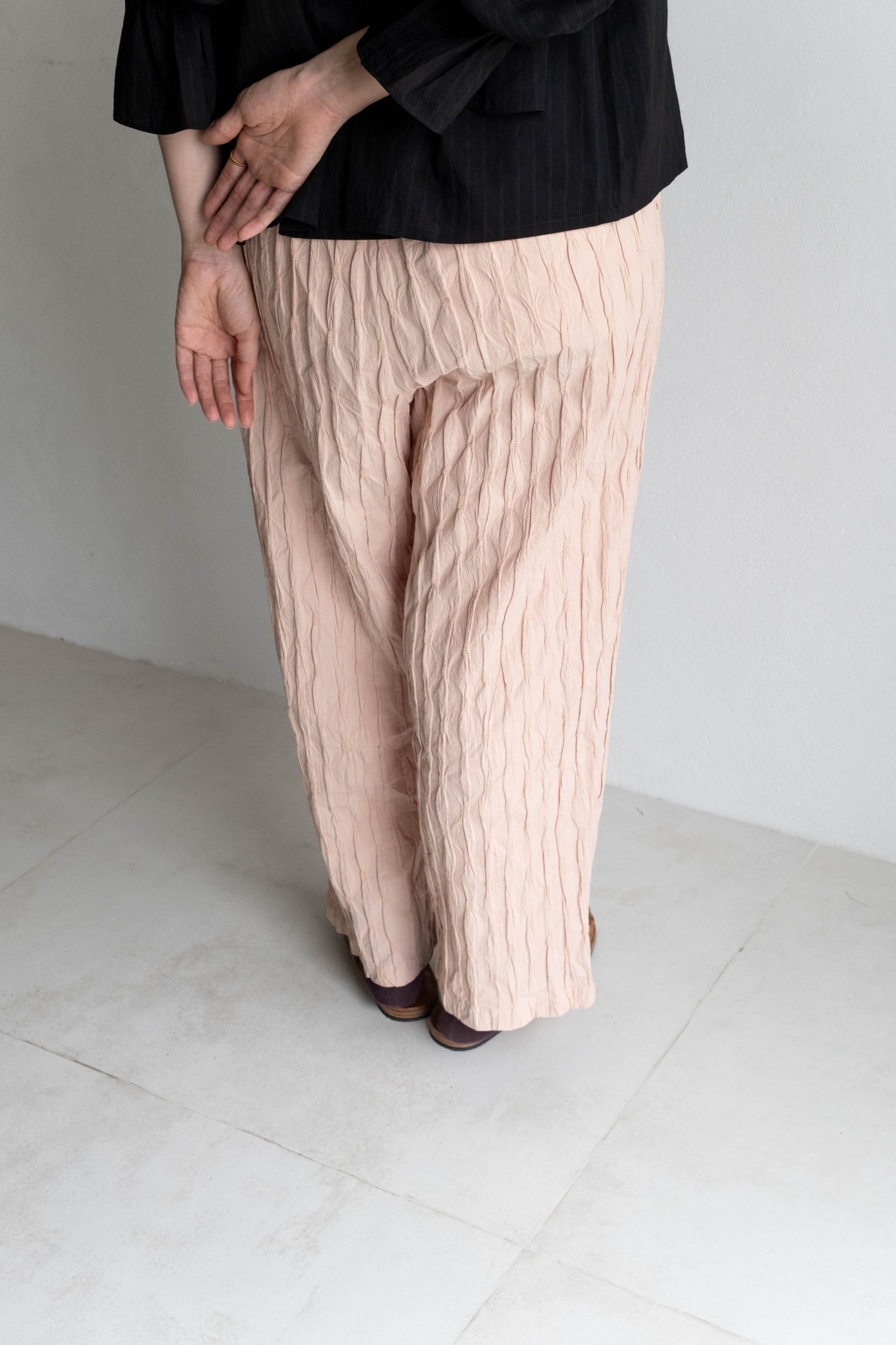 抓褶布直筒日常褲 - 乾燥粉 new