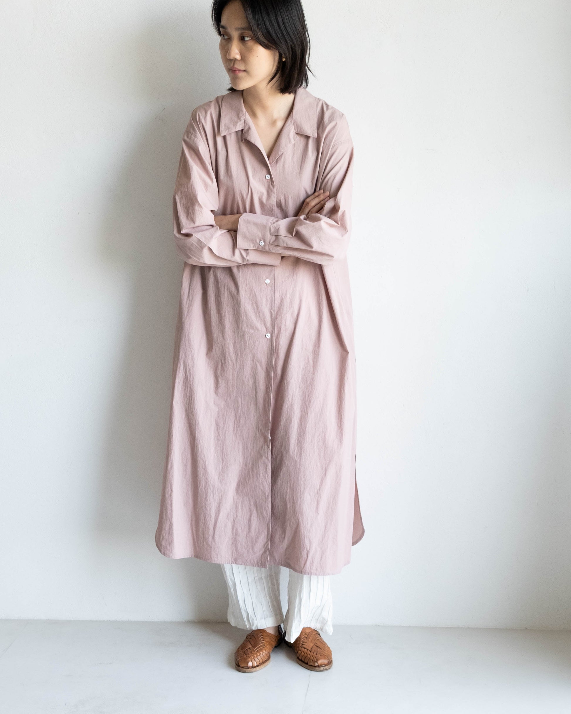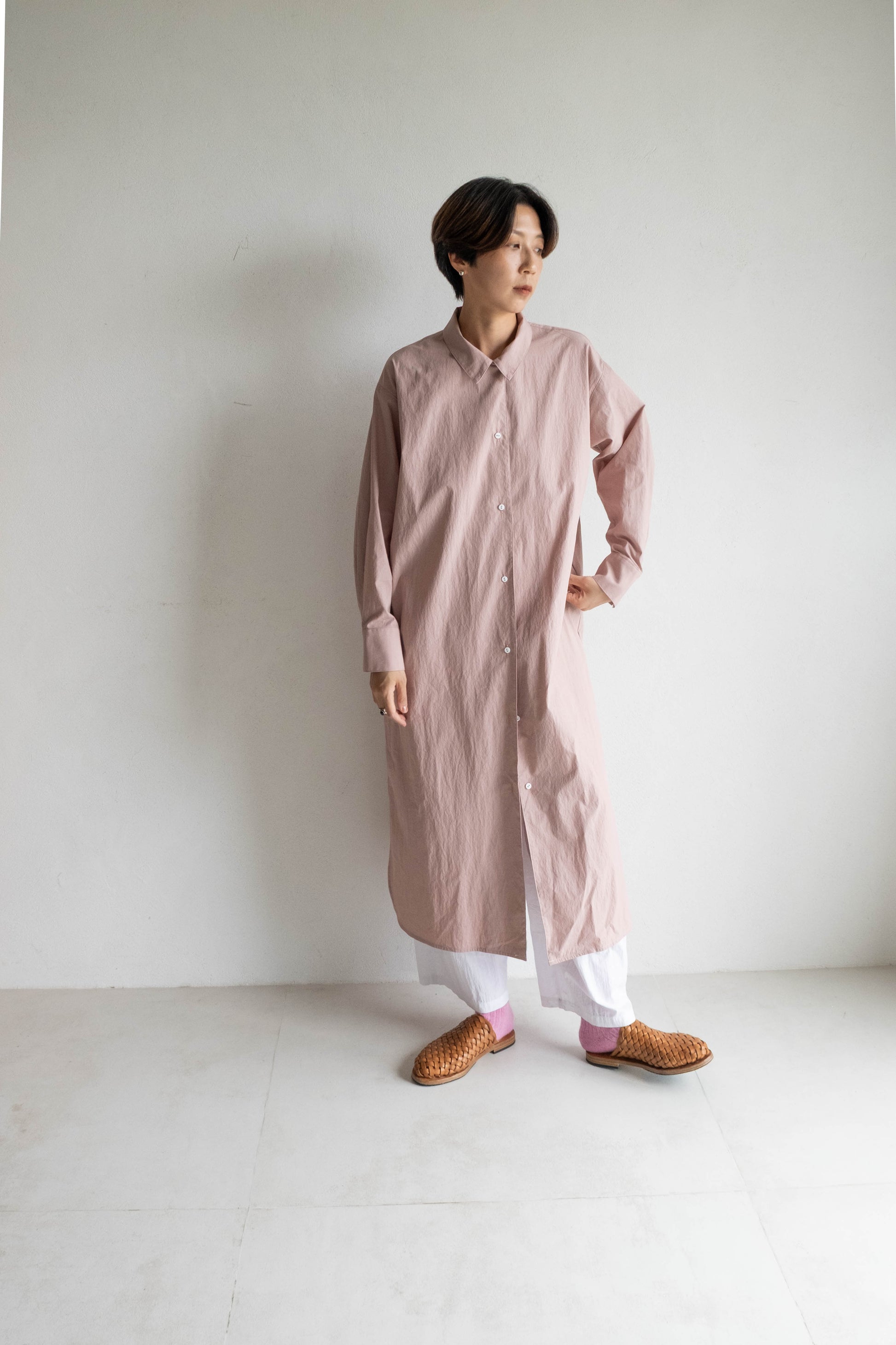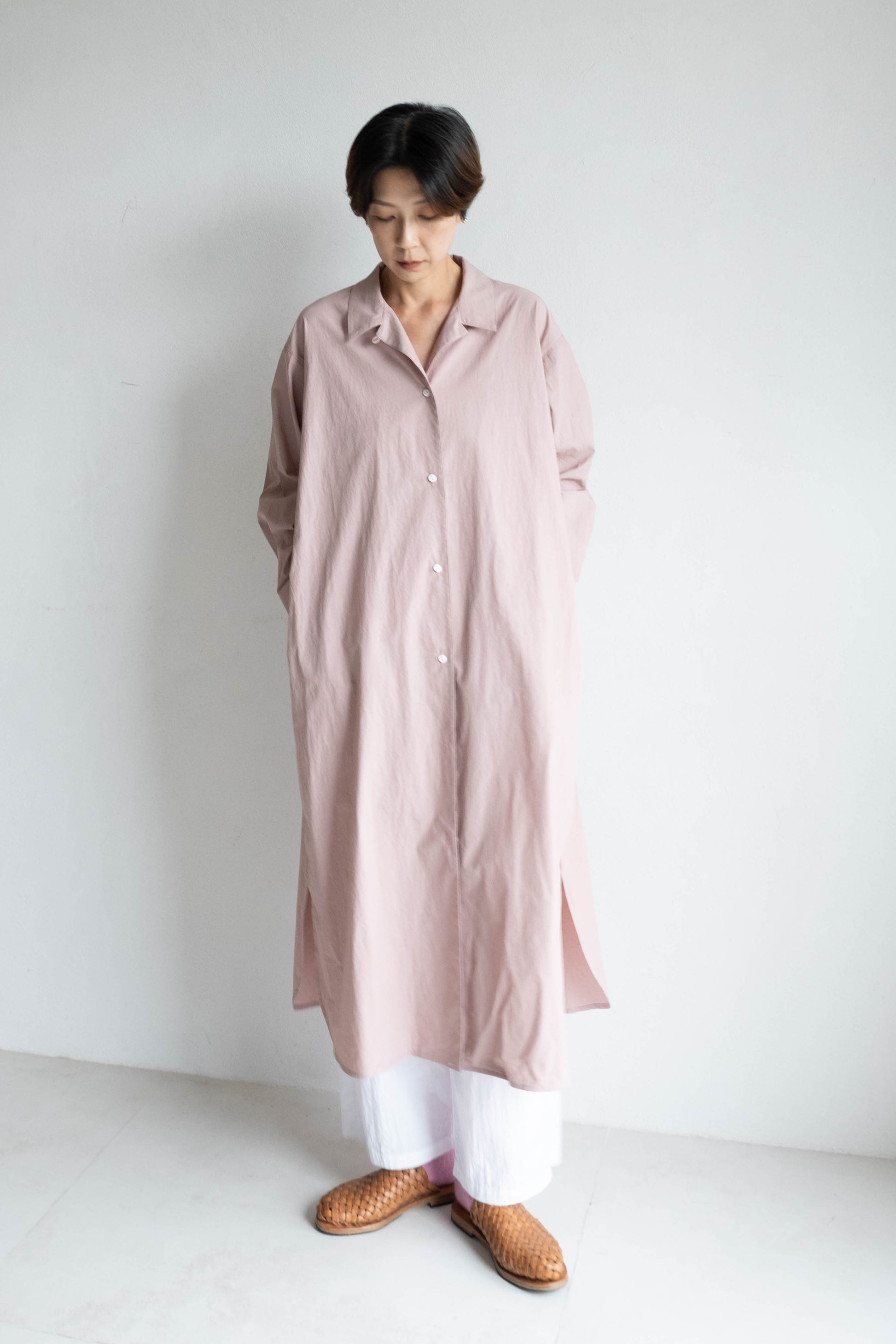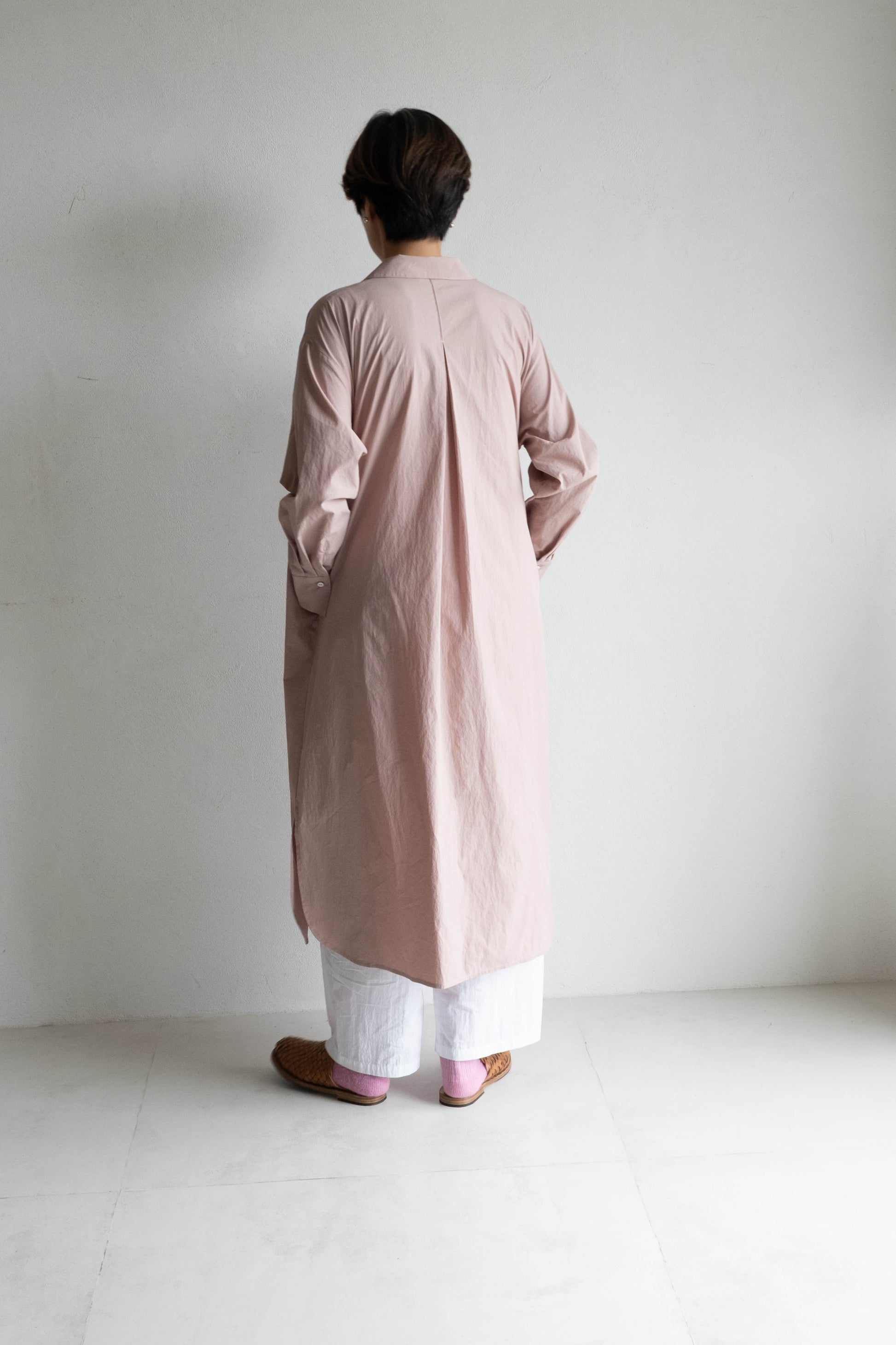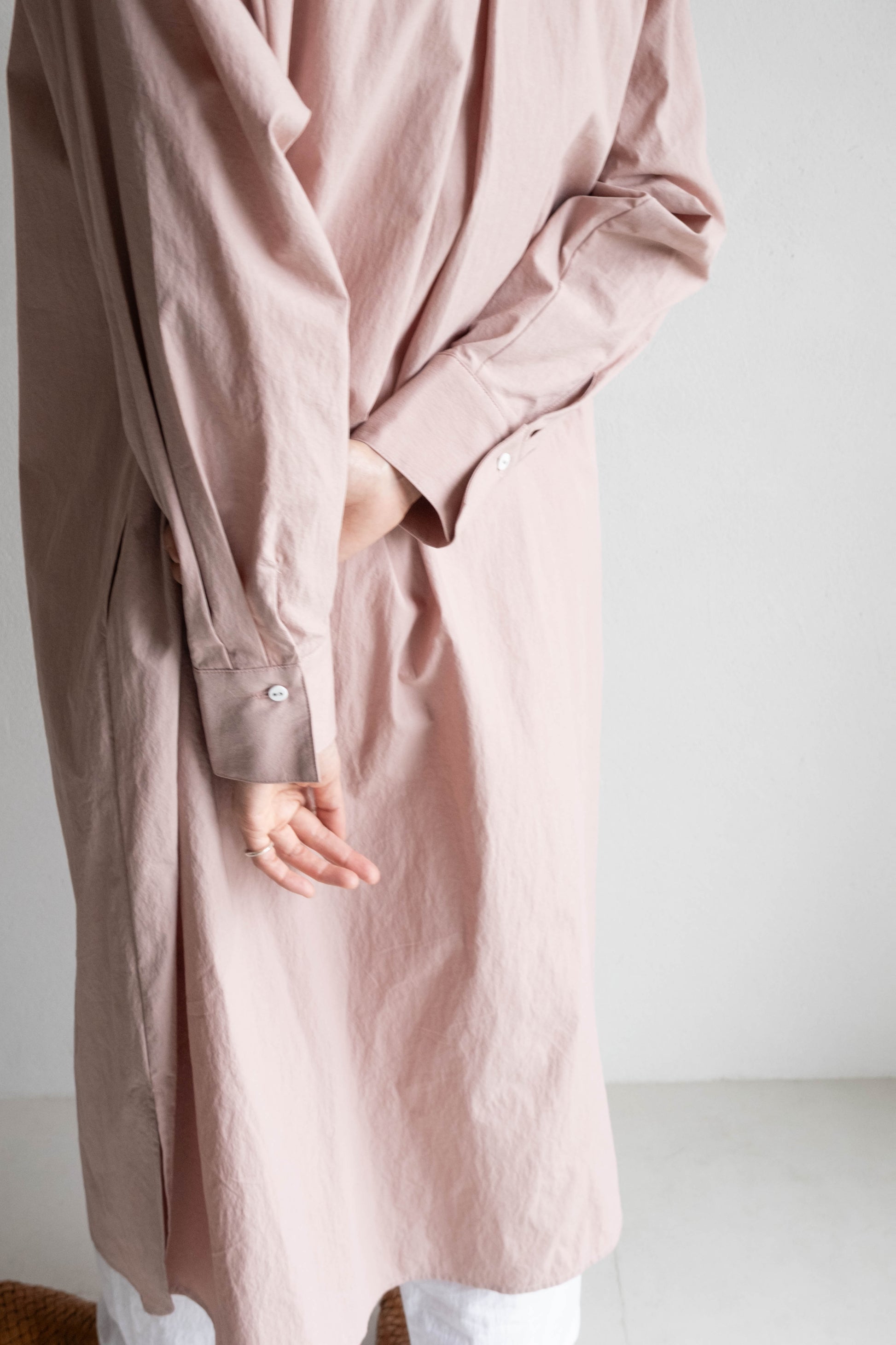 使用純棉混紡布料製成,布面密度高、挺度佳,手感滑順中帶有細緻的厚度感,適合作為長版上衣或輕外套穿著。