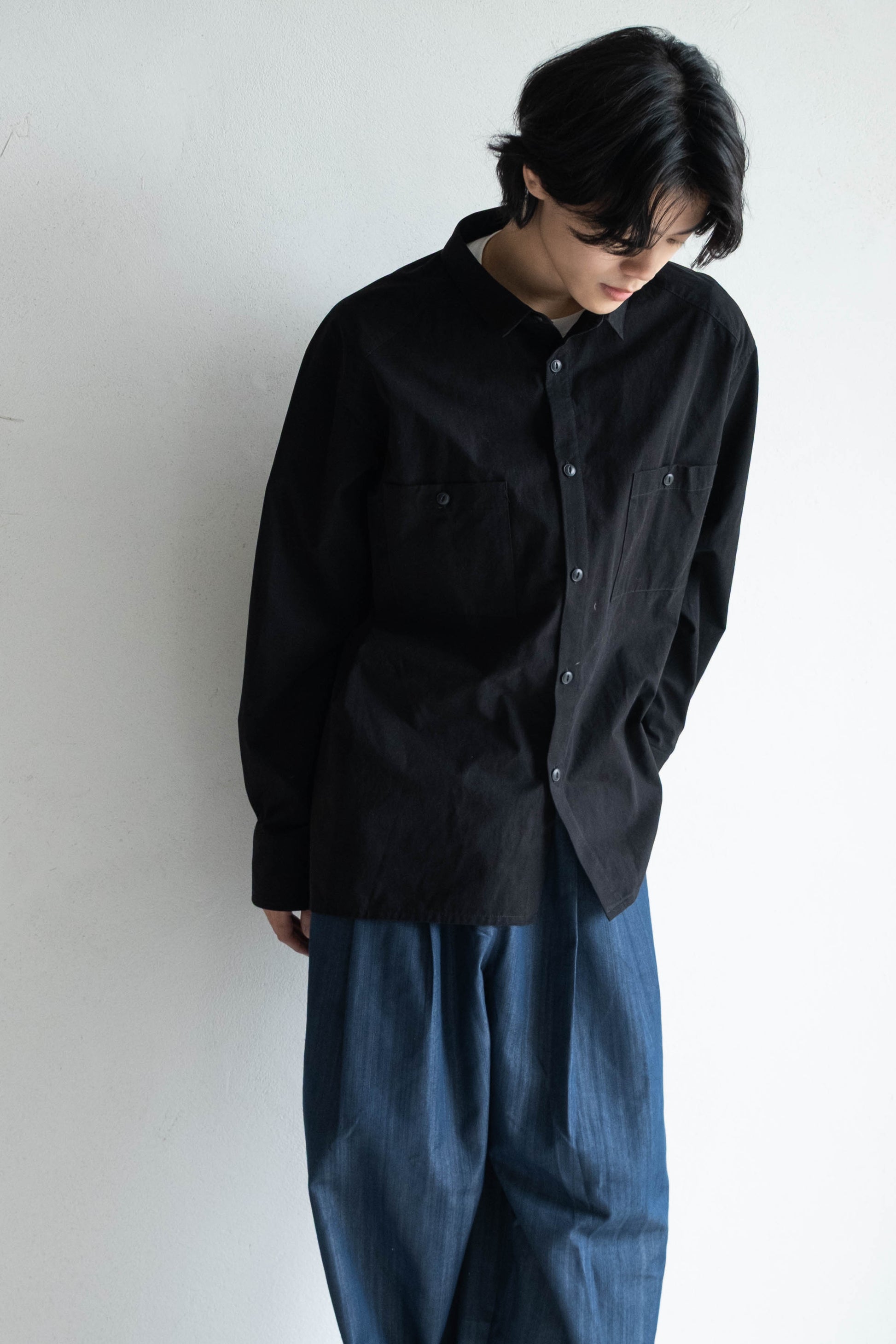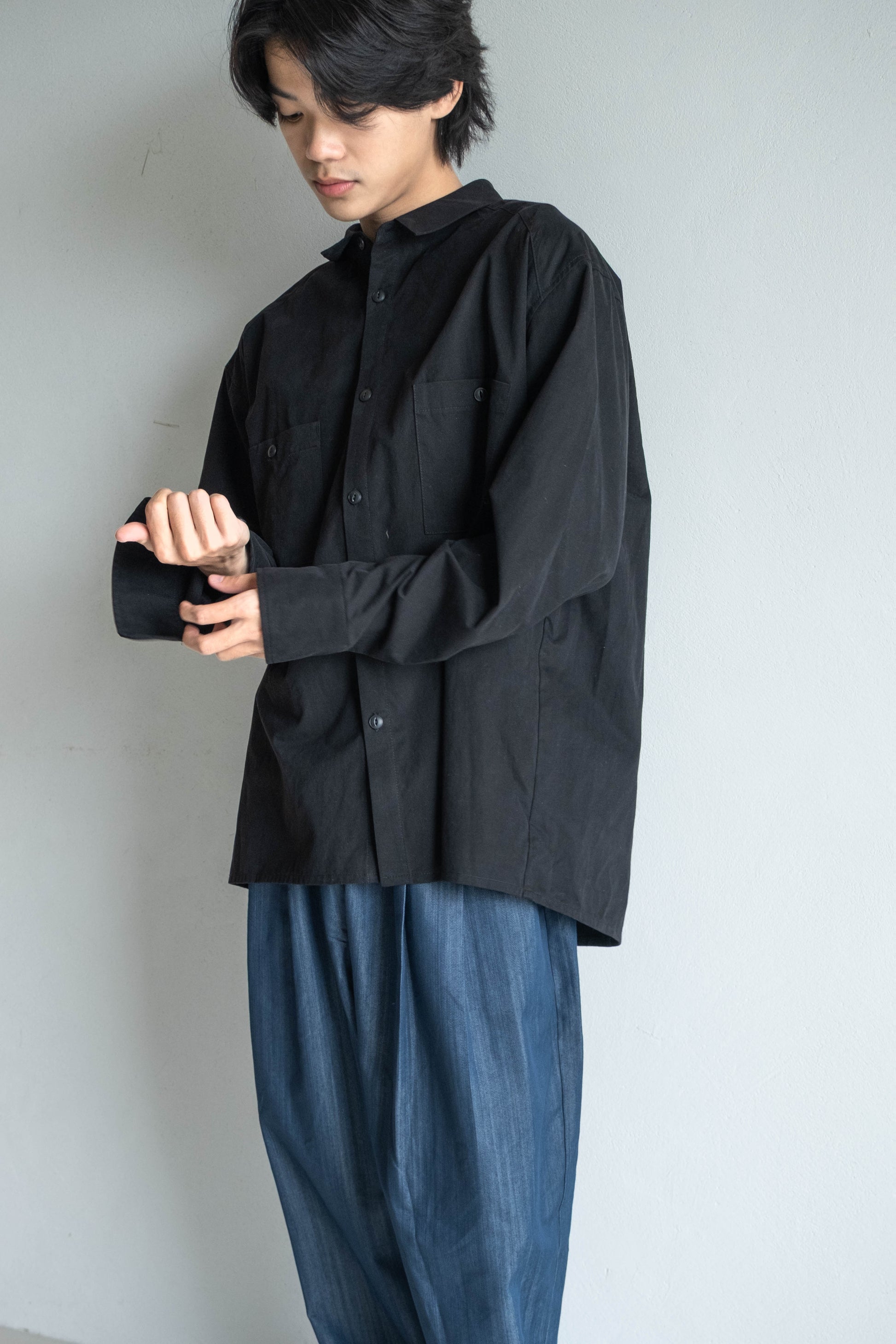 雙口袋日常襯衫 - 黑