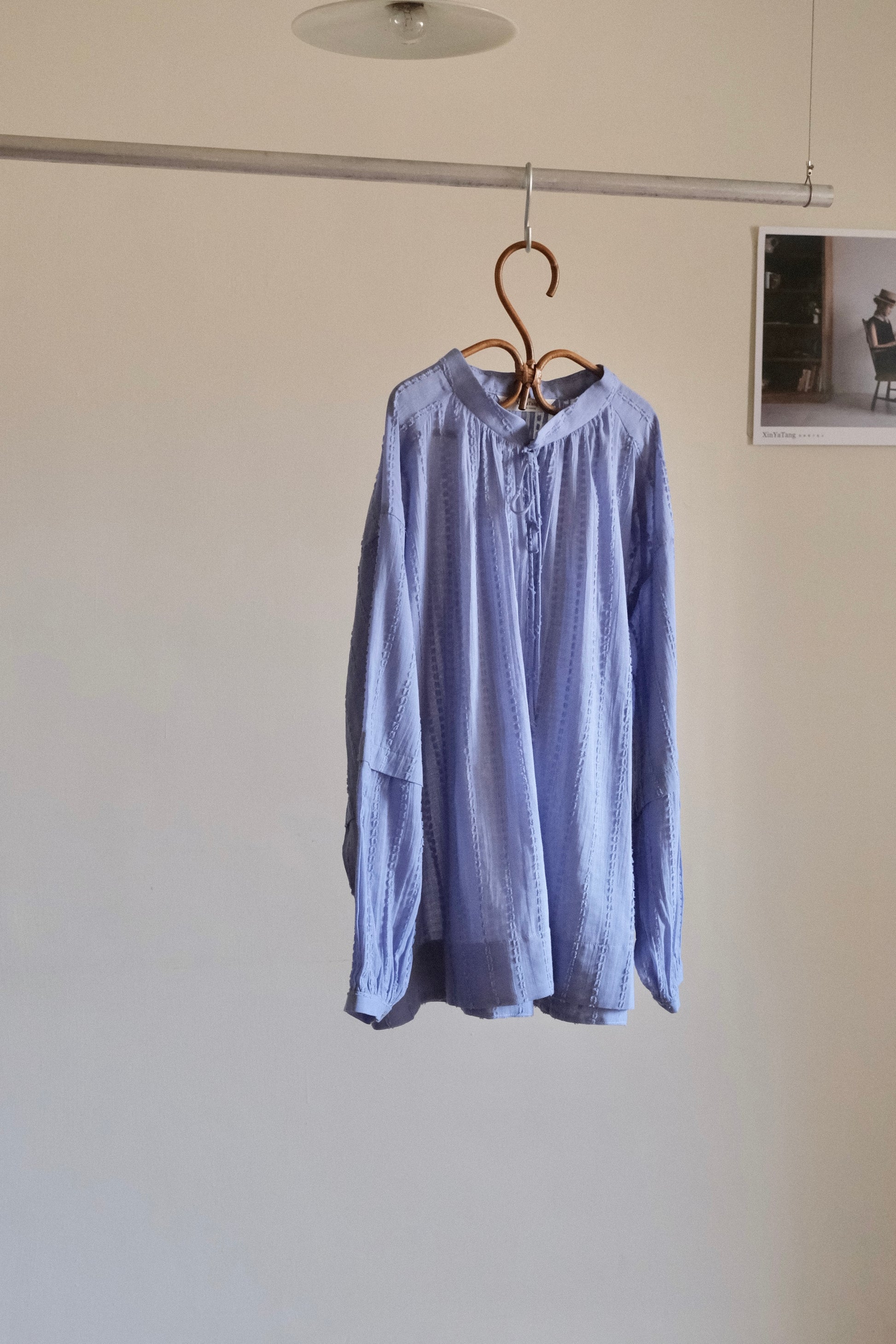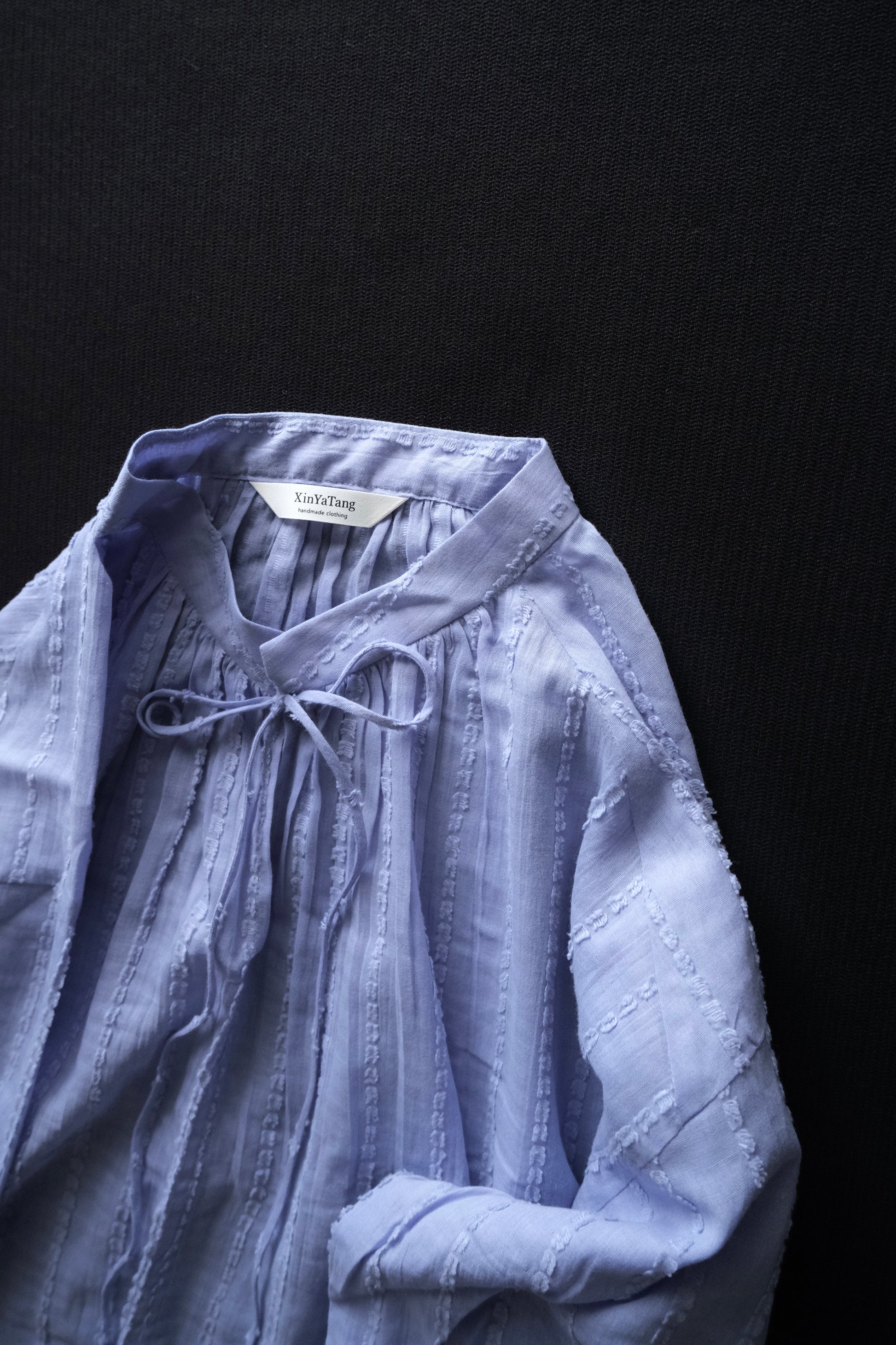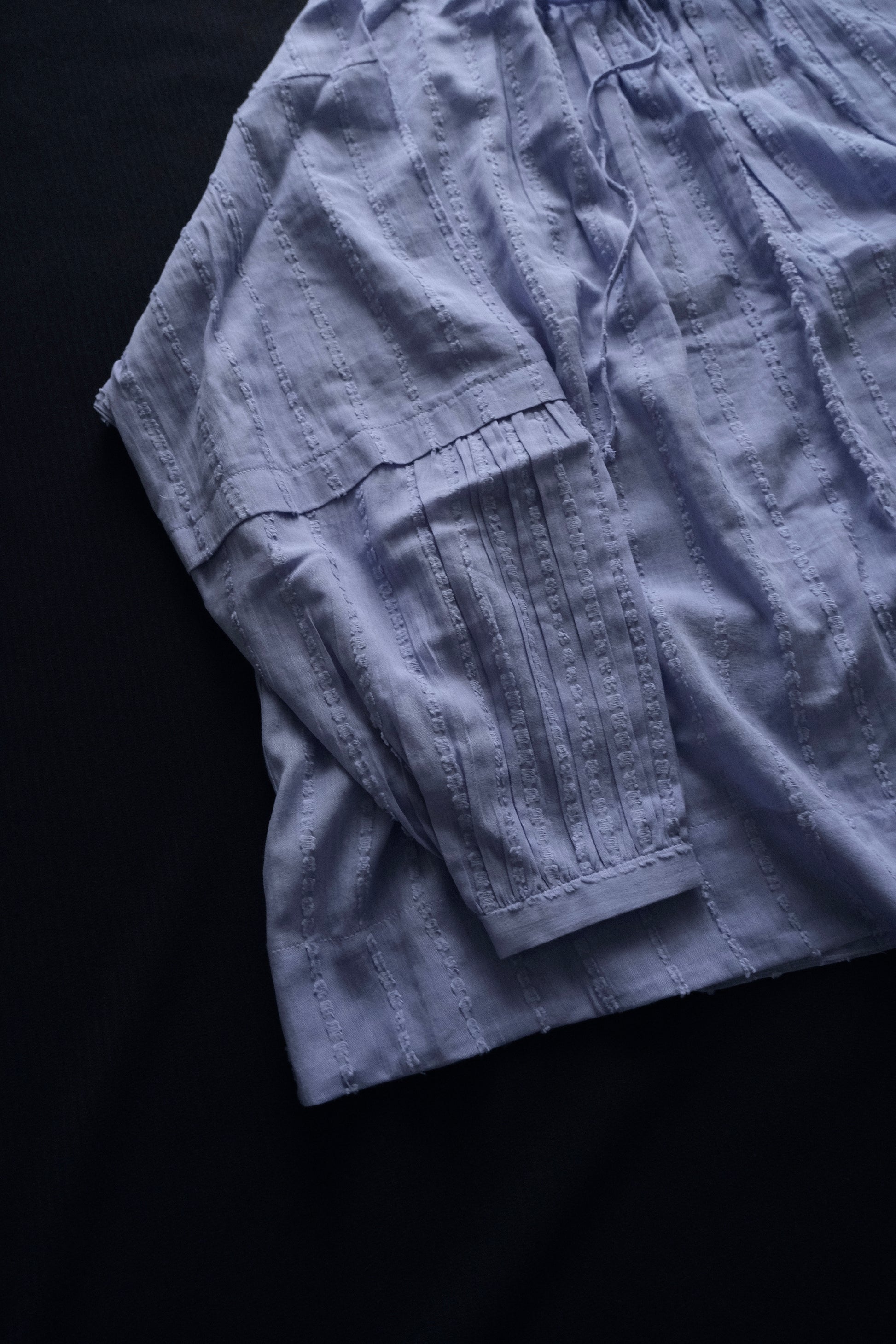 輕盈薄透的純棉布配上可愛的條紋細節,袖子剪接的設計讓空氣感更蓬鬆,剪裁為前短後長,可內搭高領或搭配牛仔褲或是裙裝都很適合,是一款可帥氣可休閒的襯衫。