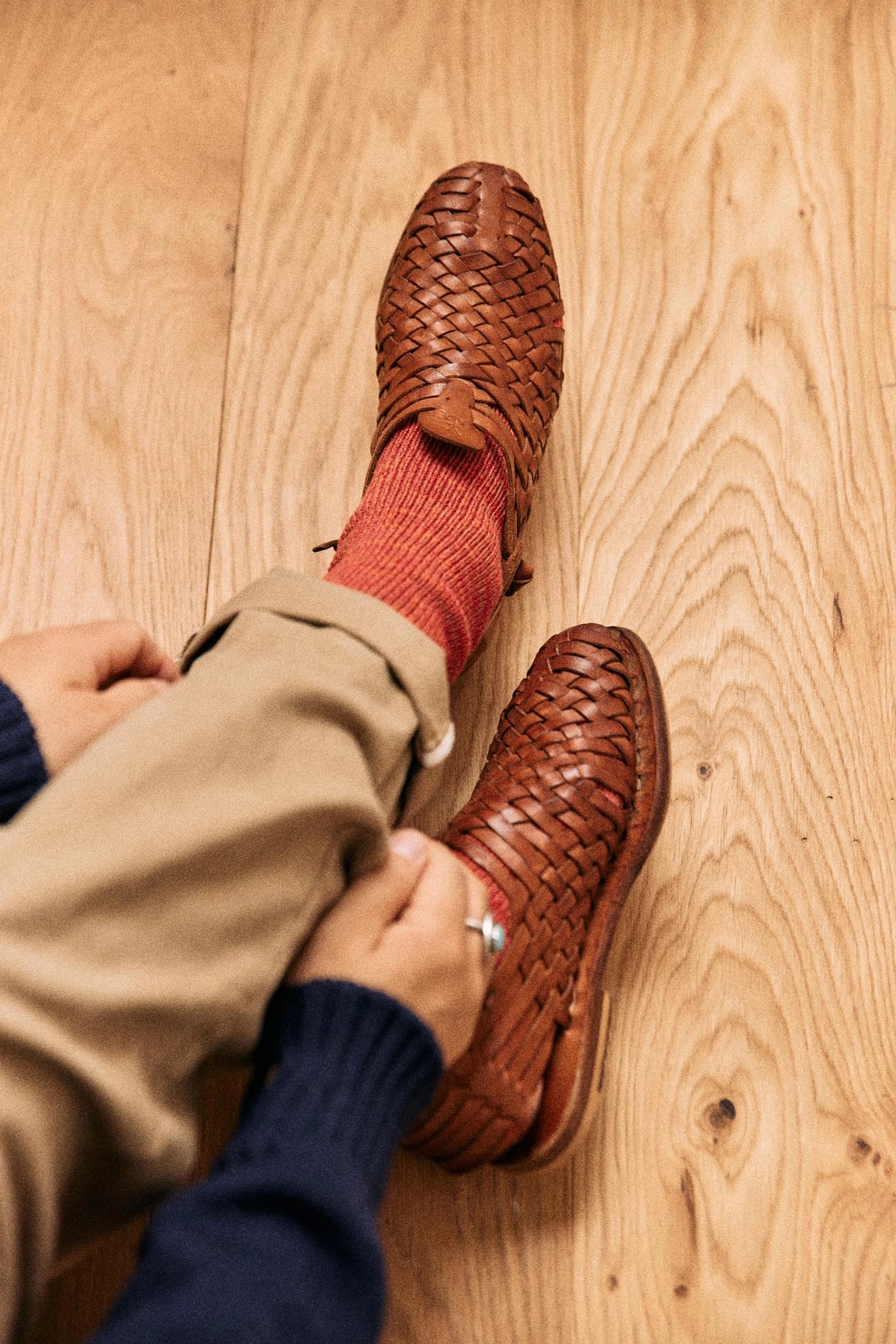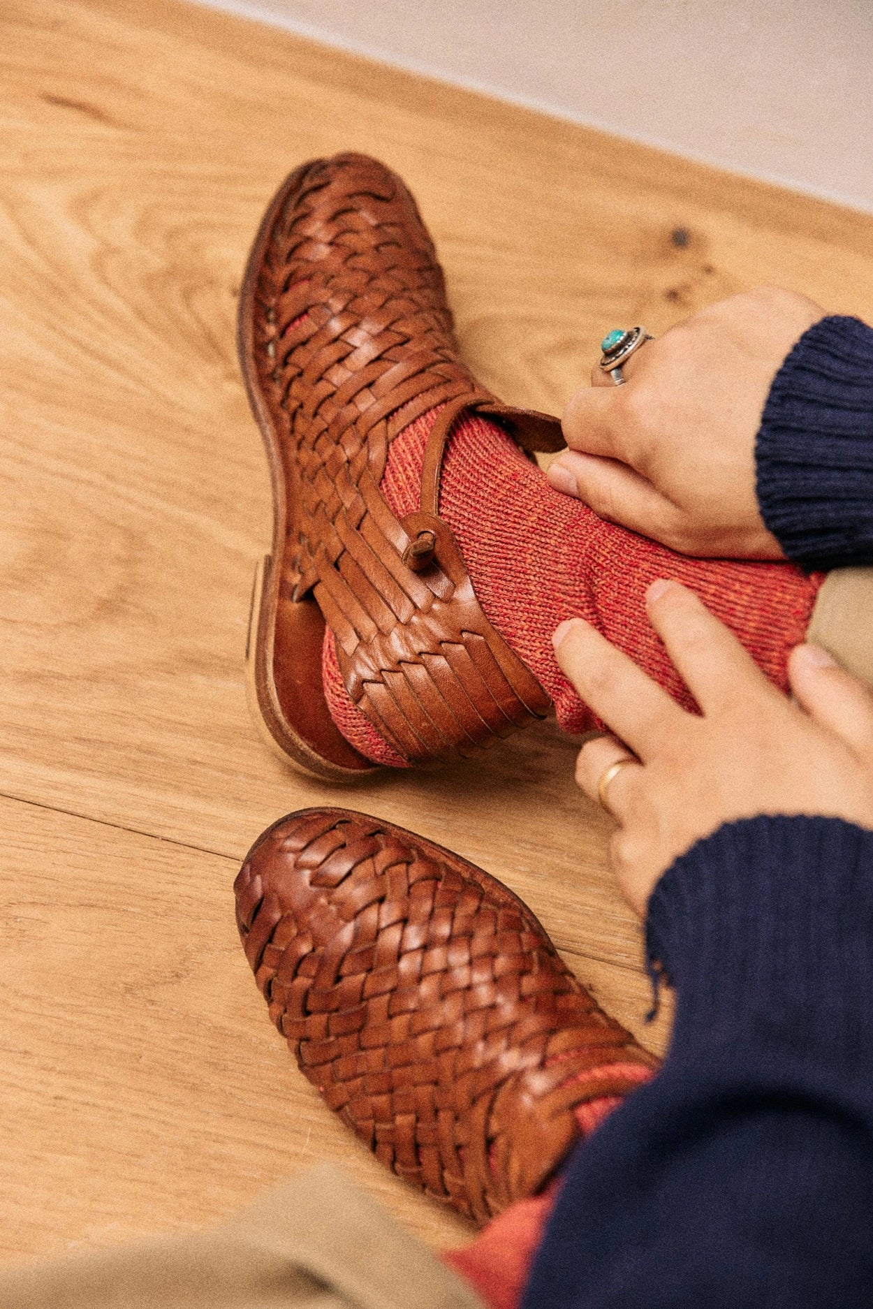 鞋子穿久後皮革會逐漸變軟、變得寬鬆;同時,編織的皮革條也會慢慢貼合腳型。