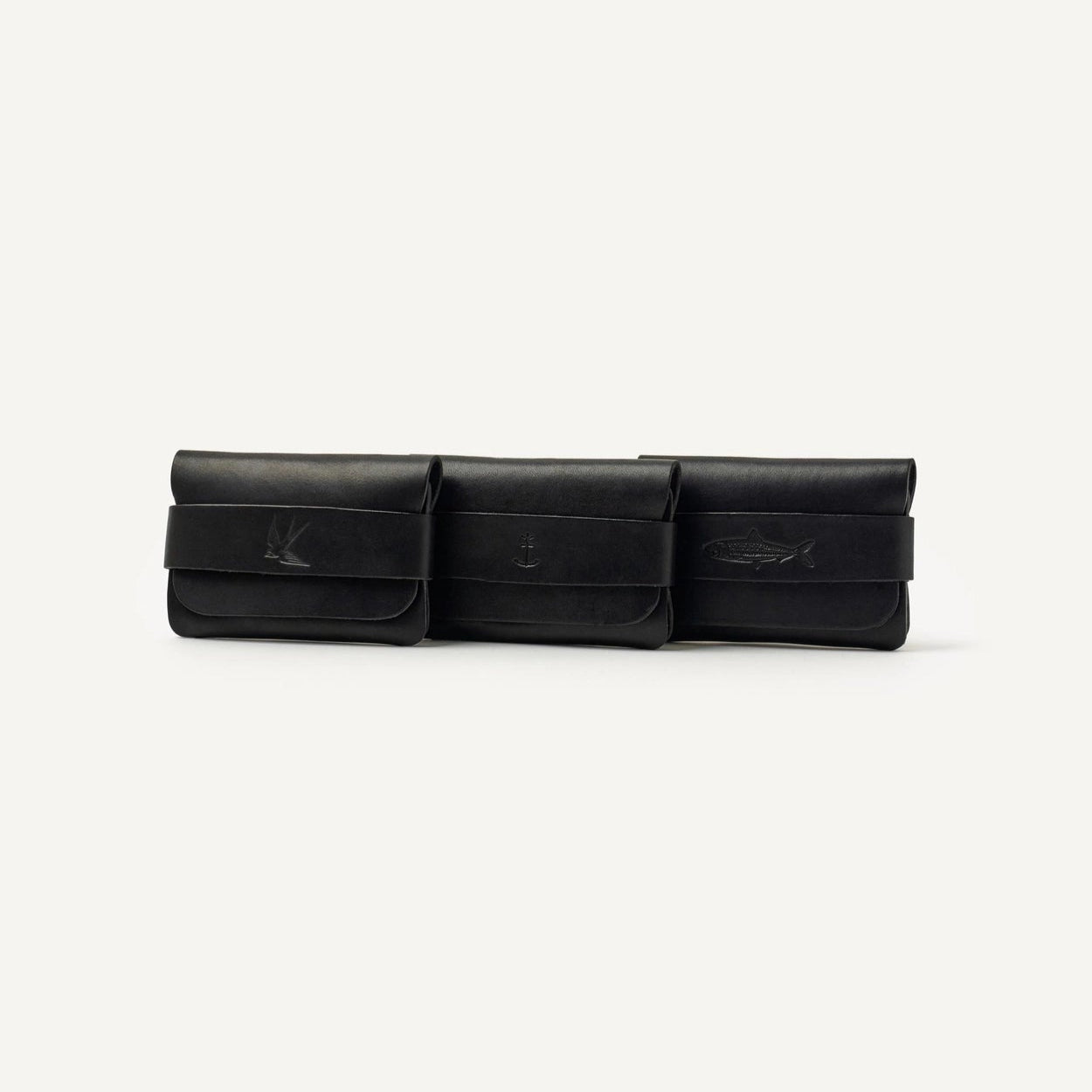 將寬版皮革背帶穿過蓋片固定的設計,讓卡片、名片、紙鈔都能輕鬆收納。